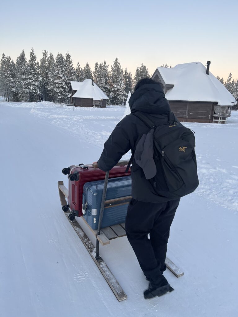 ついてすぐ、チェックイン。一つ一つコテージになっていて、自分たちでそりを押してコテージに行くようにと説明を受けました。