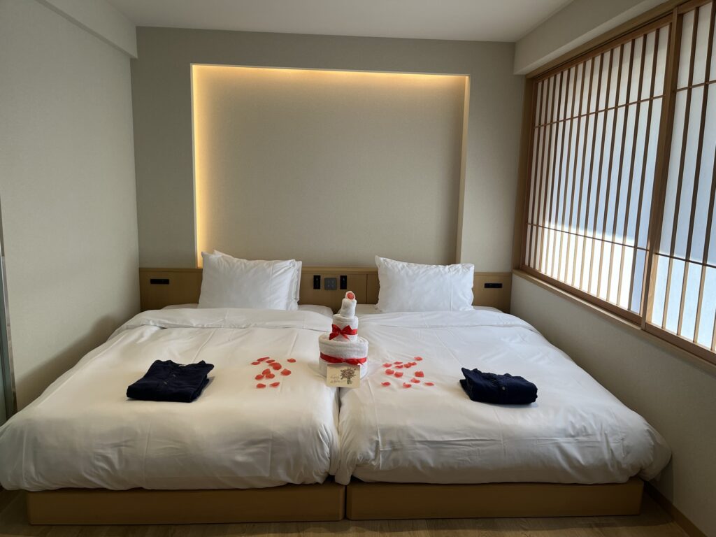 スーペリアツインルームに宿泊しました。お部屋は洗練された「和モダン」なデザイン。