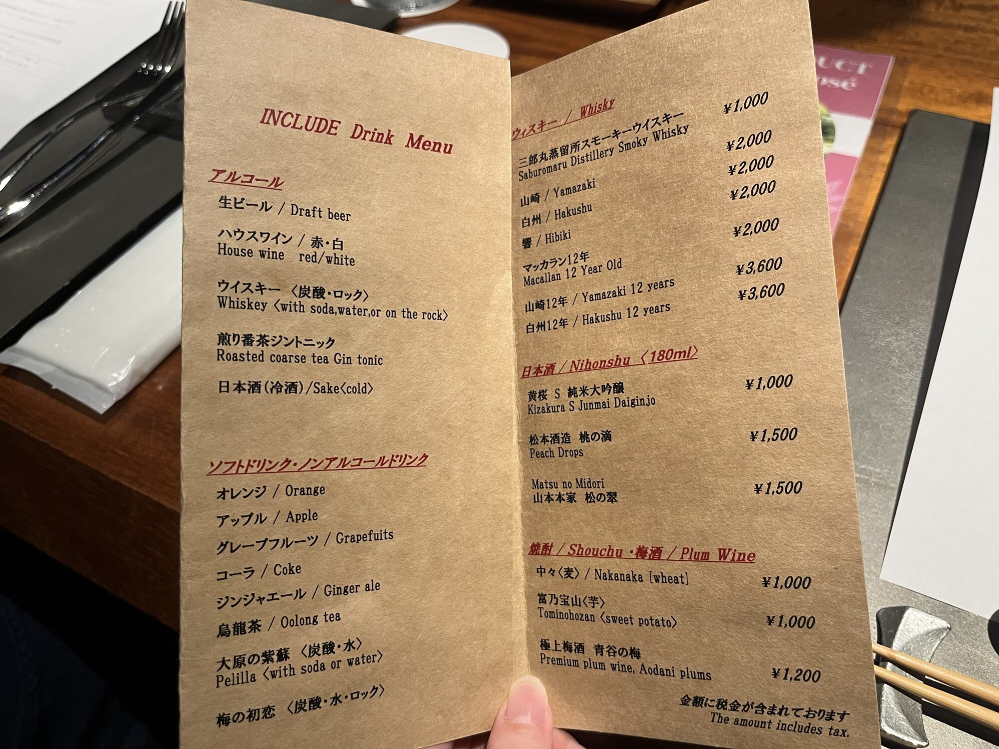 お食事中は下記画像、左の欄のドリンクがフリーフローに含まれています。