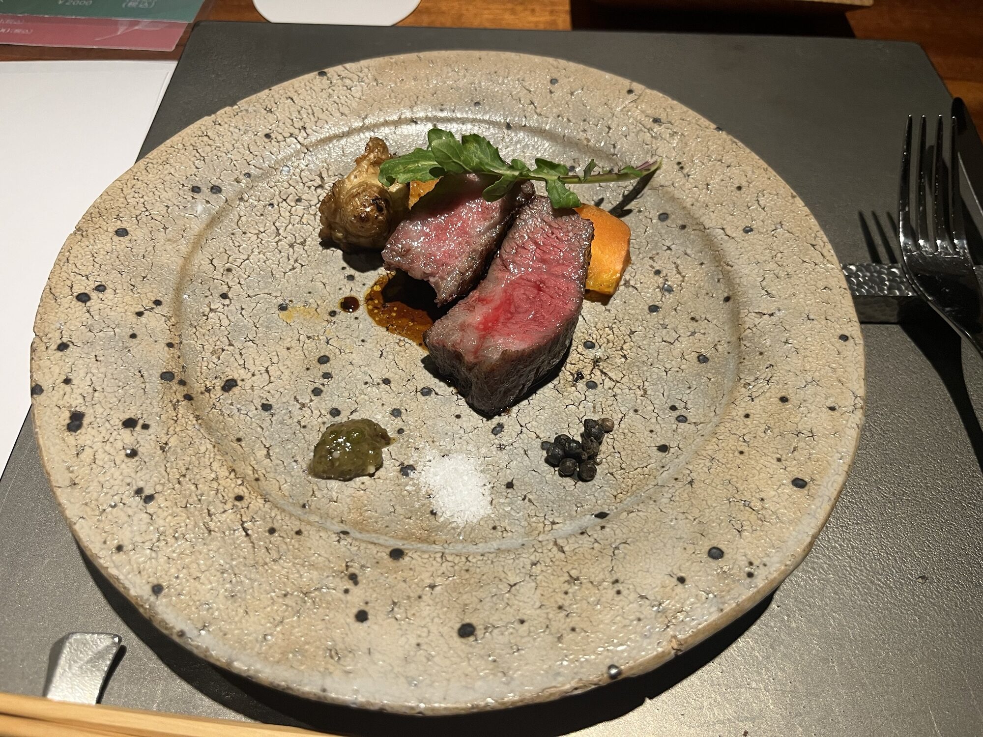 お料理は大原野菜や若狭湾のサバ、近江牛などこの土地ならではの厳選された食材。 薪の熱でじっくりと旨みが引き出されたお料理は、どれも驚くほど奥深い味わいでした。