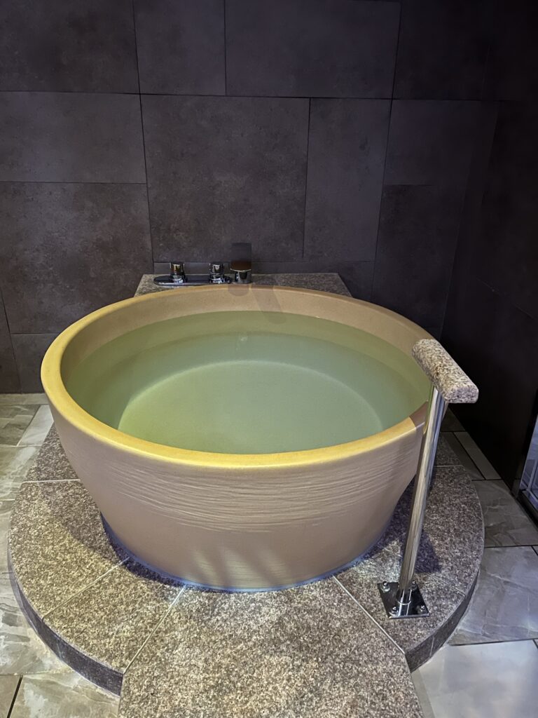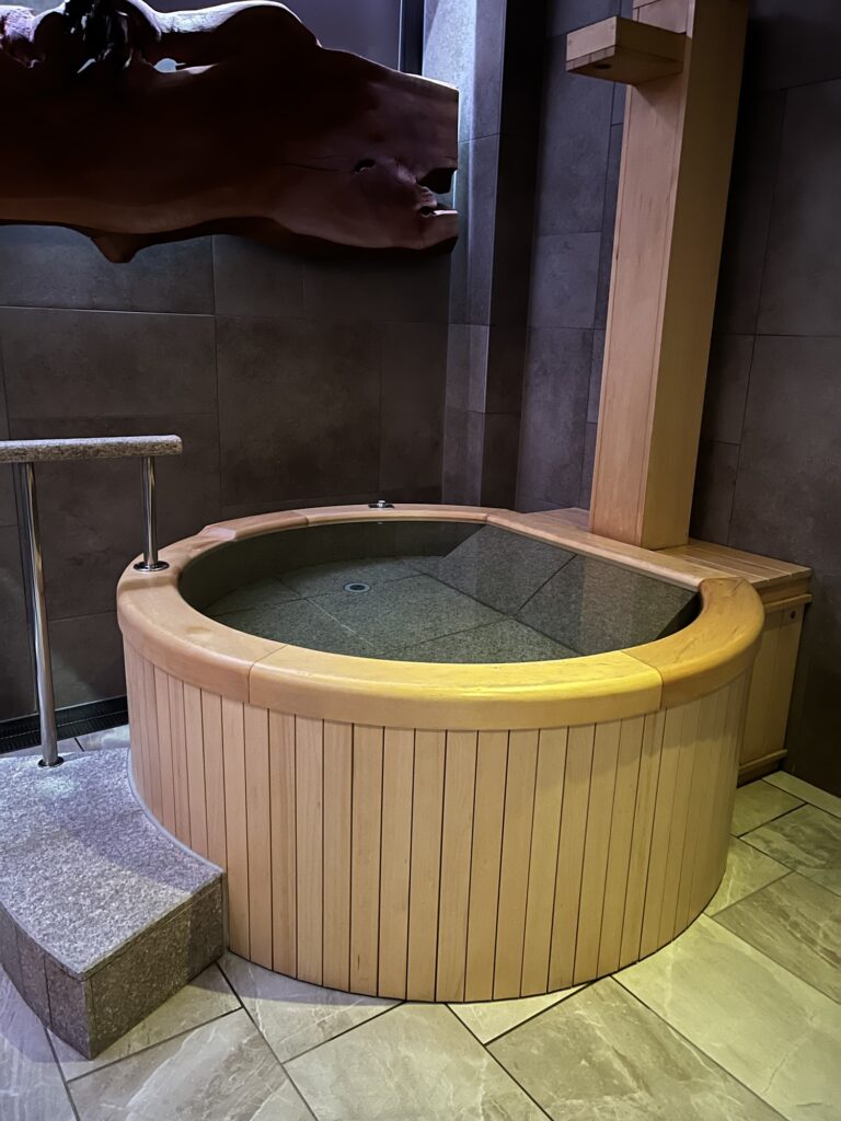 サウナは93度前後と高めの温度設定ですが、息苦しい感じが一切なく身体全体が一気に温められます。また、比叡山の伏流水を使用した水風呂も15度前後と大のサウナ好きのオットも大満足の様子でした。