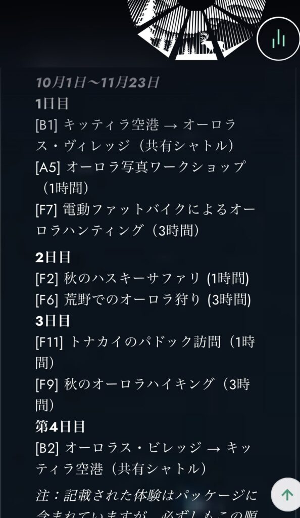 2025年11月後半で大人一人約30万円ほどでした。少々お値段ははりましたが、オーロラツアー3回、その他のアクティビティ、ホテル⇔空港間の送迎、3食付きでこの値段であれば、大満足です。