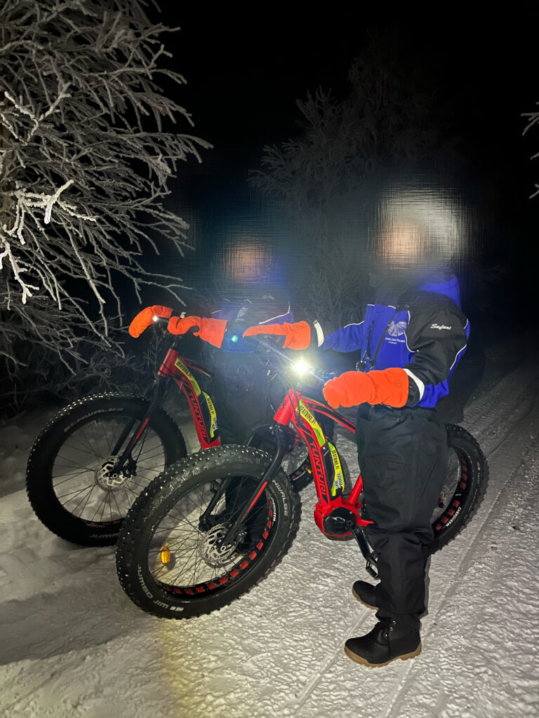どのアクティビティも開始15分前にフロントの隣りにあるアクティビティ施設で集合します。初日は夜の9時から3時間、電動自転車でオーロラハントをするというツアーでした。